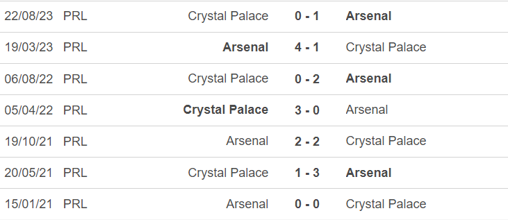 Theo thống kê lịch sử đối đầu giữa hai đội, Arsenal có thành tích vượt trội với 28 chiến thắng và 4 thất bại trong 47 lần đối đầu với Crystal Palace. Lần gần nhất hai đội gặp nhau là vào tháng 8/2023. Trong trận đấu này, Arsenal giành chiến thắng tối thiểu trước đội chủ nhà và đó cũng là chiến thắng thứ 3 liên tiếp trong cuộc đối đầu giữa hai đội.