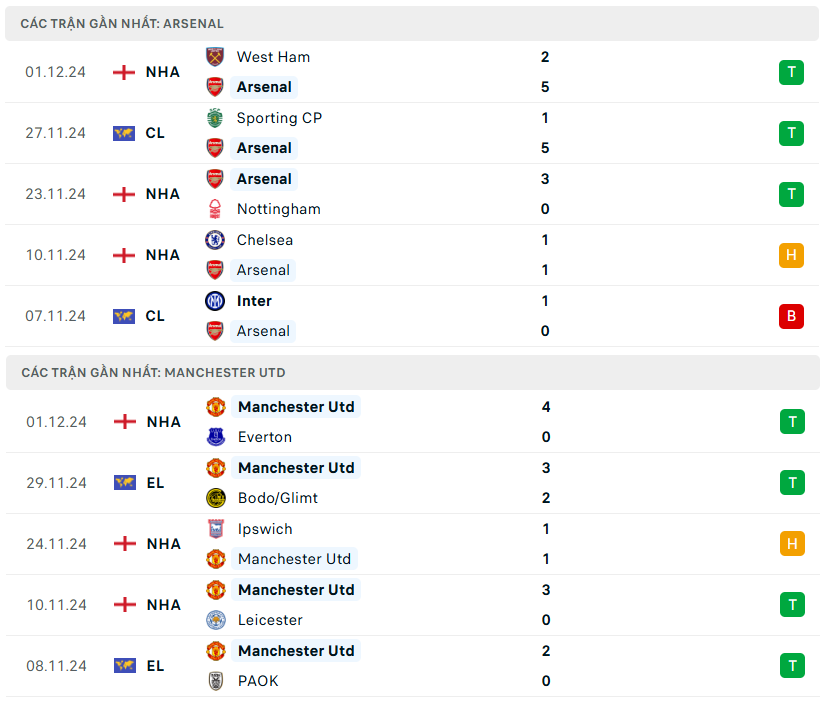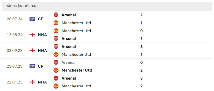 Lịch sử đối đầu, phong độ Arsenal vs MU