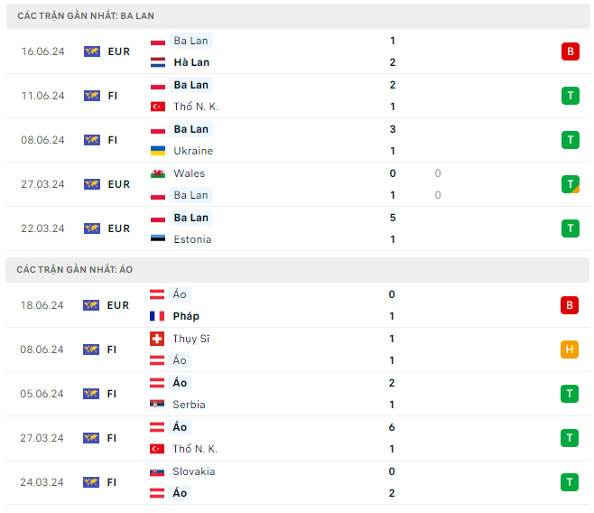 Ba Lan và Áo gặp nhau tại Olympiastadion ở Berlin vào thứ Sáu để tìm kiếm điểm đầu tiên tại EURO 2024. Ba Lan đã thua Hà Lan 1-2 ở trận quân, nhưng họ chưa từng thua 2 trận liên tiếp trong lịch sử dự EURO. Đây sẽ là điểm tựa để “Đại bàng” hy vọng vào thế trận tốt trước Áo.