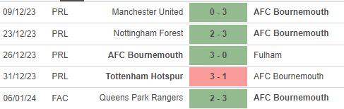 Trong 5 trận đấu gần nhất tính trên mọi đấu trường, Bournemouth giành 4 chiến thắng và chỉ nhận 1 thất bại duy nhất. Đáng chú ý là chiến thắng 3-0 ngay trên sân Old Trafford trước MU. Để làm được điều này, không thể không nhắc đến làn gió mới mà HLV Andoni Iraola đã thổi vào đội hình của Bournemouth. Lối chơi kiểm soát và chủ động pressing được Bournemouth triển khai rất tốt và giúp ‘The Cherries’ có được phong độ ấn tượng, thắng 7 trên 10 vòng đấu gần nhất. Họ chỉ khuất phục trước các đội bóng như Man City hay Tottenham.