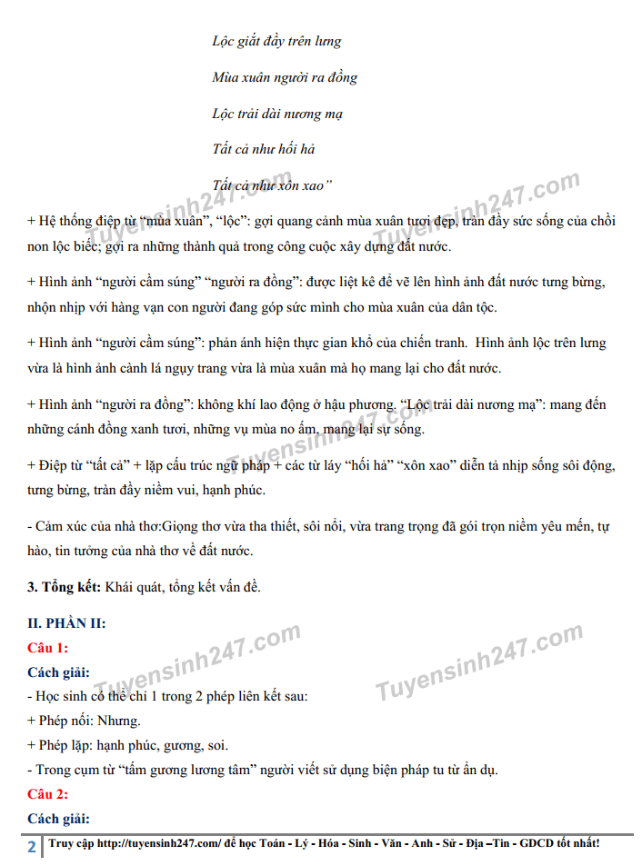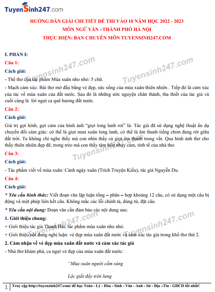 Dưới đây là đáp án tham khảo môn Văn do tuyensinh247.com cung cấp, mời bạn tham khảo ngay!