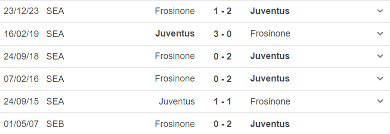Theo thống kê lịch sử đối đầu giữa hai đội, Juventus hiện vẫn bất bại trước đối thủ Frosinone trong 7 lần thi đấu. Cụ thể, đội chủ sân Allianz giành 6 chiến thắng và chỉ bị cầm hoà 1 trận. Lần gần nhất hai đội gặp nhau chỉ cách đây chưa đến 20 ngày tại đấu trường Serie A. Đó là trận đấu mà Juventus đã giành trọn 3 điểm ngay trên sân nhà của Frosinone