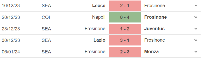Frosinone đang xếp thứ 15 trên bảng xếp hạng Serie A với 19 điểm sau 19 trận. Họ chỉ mới giành đúng 5 chiến thắng mùa này và có đến 10 thất bại tại giải quốc nội, trong đó chuỗi 4 trận thua liên tiếp gần nhất. Với màn thể hiện này, người hâm mộ đội khách có lẽ không kỳ vọng quá nhiều vào khả năng đi tiếp của đội nhà khi phải đối đầu với một Juventus đang thăng hoa.