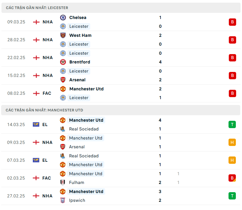 Mọi chuyện sẽ rất khó khăn với Leicester City, bởi lẽ MU đang thăng hoa. Sau thời gian dài khốn khổ cùng HLV Ruben Amorim, Quỷ đỏ dường như đã có sự ổn định cần thiết. Nếu tính trong 90 phút, họ đã bất bại 6 trận liên tiếp gần đây (thắng 2, hòa 4). Đáng chú ý, MU vừa đè bẹp Sociedad 4-1 để giành vé vào tứ kết Cúp C2 châu Âu. Tinh thần của họ đang lên cao hơn bao giờ hết.