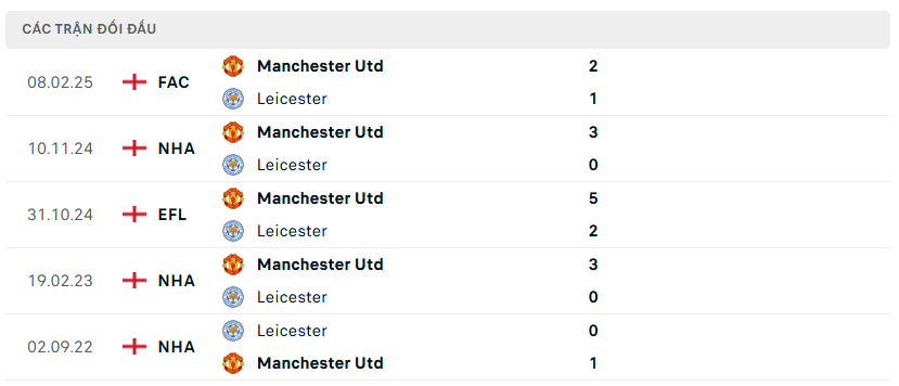 Lịch sử đối đầu, phong độ Leicester City vs MU