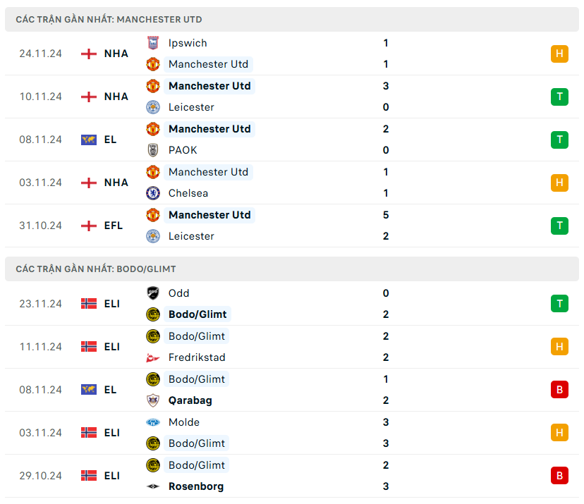 Lịch sử đối đầu, phong độ MU vs Bodo Glimt