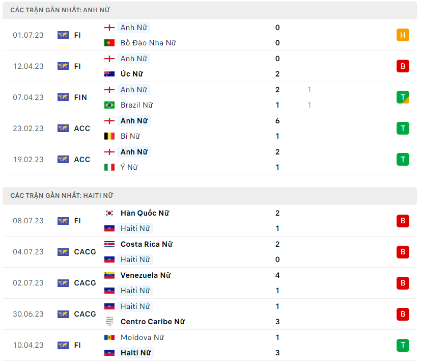 Phong độ, lịch sử đối đầu nữ Anh vs nữ Haiti