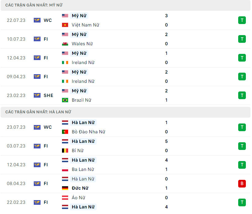 Phong độ, lịch sử đối đầu nữ Mỹ vs nữ Hà Lan