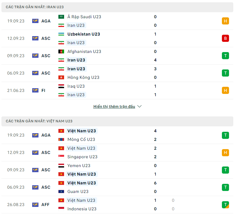 Việt Nam từng gặp Iran 2 lần tại Asiad trước đây. Năm 2010, Việt Nam thua 0-1, nhưng đội bóng áo đỏ đã gây sốc vào năm 2014 khi đè bẹp Iran với tỷ số 4-1. Các cầu thủ ghi bàn cho Việt Nam ở trận đấu cách đây 9 năm là Võ Huy Toàn, Mạc Hồng Quân, Trần Phi Sơn và Ngô Hoàng Thịnh.