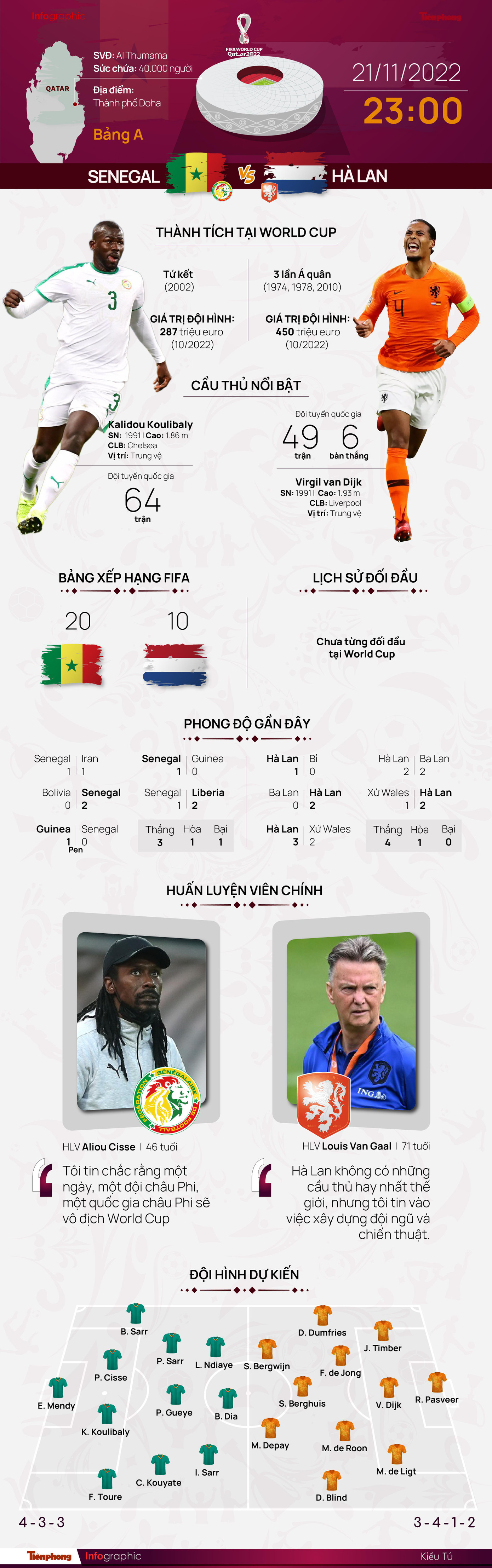 Đó là động lực thôi thúc họ càng thi đấu nỗ lực ở Cúp thế giới năm nay. Người ta thường nói, đầu có xuôi thì đuôi mới lọt. Hà Lan dĩ nhiên đặt quyết tâm 3 điểm trước Senegal lần chạm trán vào đêm nay. Chiến thắng sẽ giúp họ tự tin hơn trên hành trình phía trước, đồng thời mở toang cánh cửa đi tiếp, thậm chí với ngôi đầu bởi hai đối thủ còn lại là Qatar và Ecuador đều bị đánh giá thấp hơn rất nhiều Senegal.