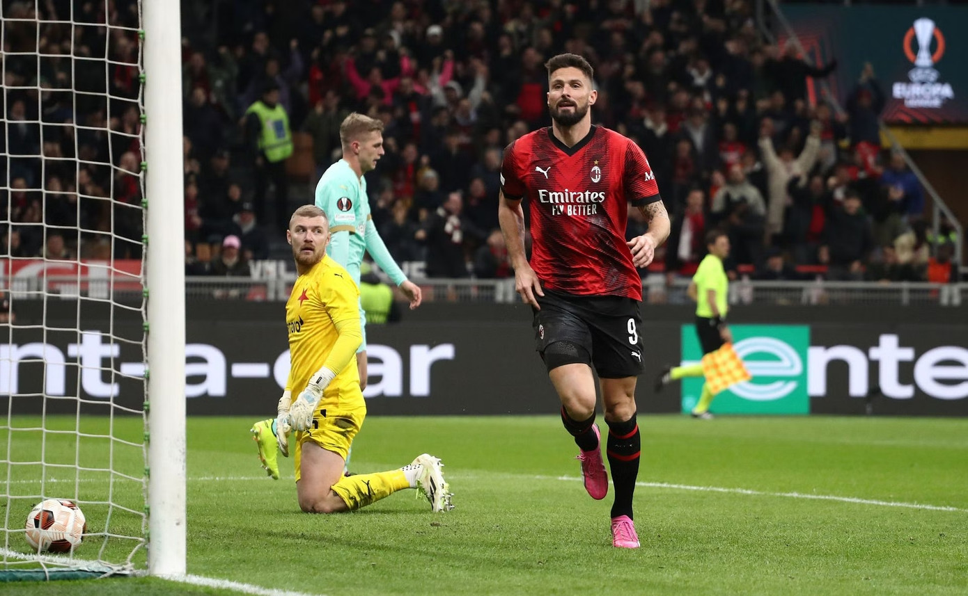 Trong trận lượt đi, Slavia Praha phải thi đấu chỉ với 10 người nhưng họ vẫn giữ được thế trận rất tốt trước AC Milan. Một cuộc rượt đuổi tỉ số đã diễn ra trên sân Milano giữa AC Milan và đội khách Slavia Prague. Tuy nhiên, Giroud và các đồng đội đã tận dụng triệt để lợi thế sân nhà và được thi đấu hơn người để giữ lại 3 điểm tại Ý với chiến thắng 4-2.