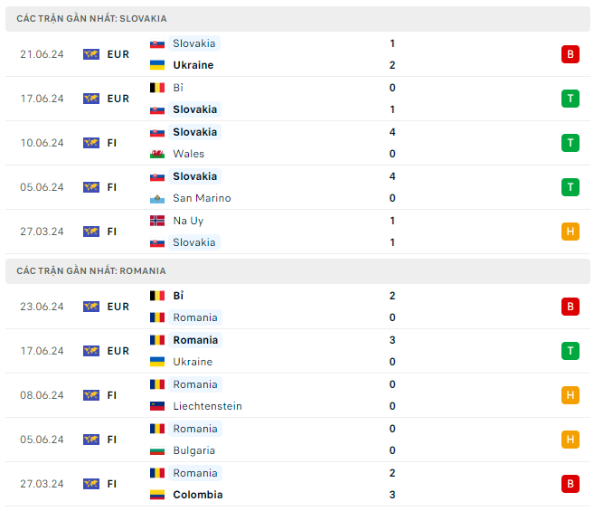 Lịch sử đối đầu và phong độ Slovakia vs Romania
