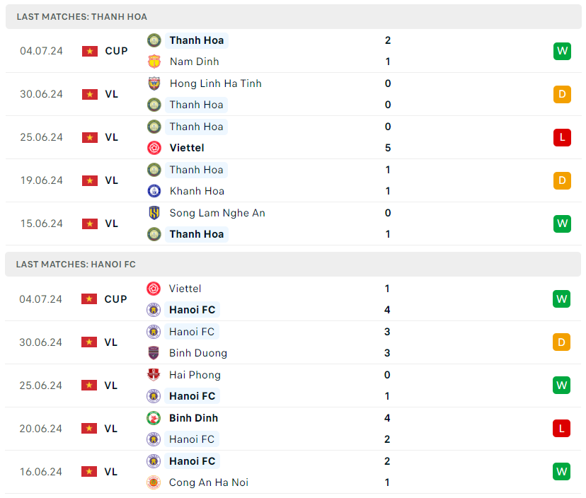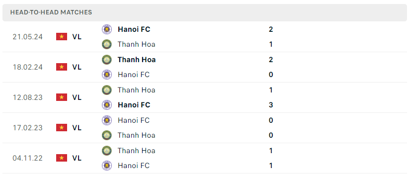 Hà Nội FC nhỉnh hơn Thanh Hóa trong các lần đối đầu gần đây. Trong 10 trận gần nhất giữa hai đội, Hà Nội FC thắng 5 trận, hòa 3 và chỉ thua 2 trận.