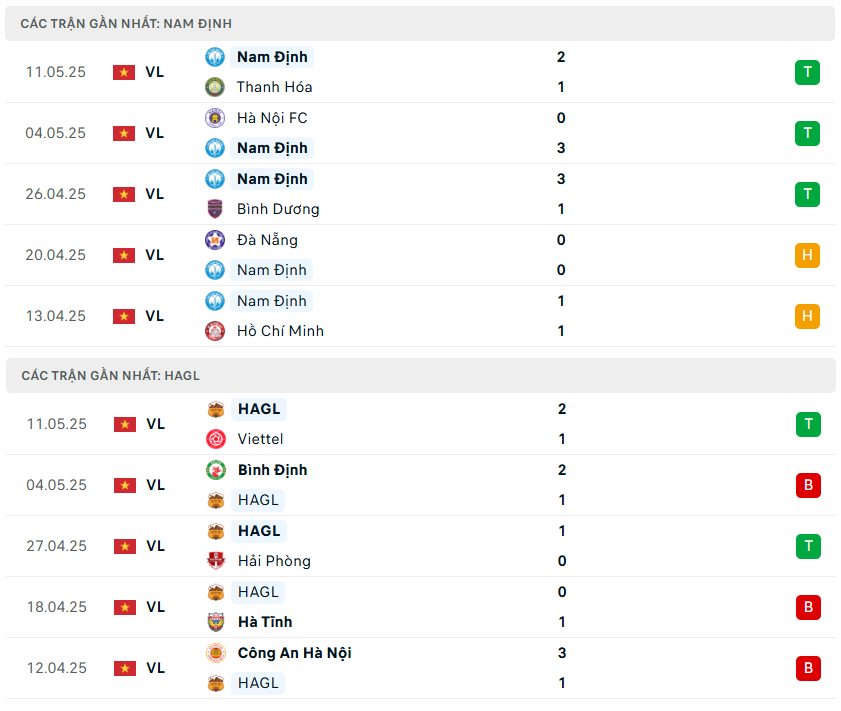 Lịch sử đối đầu, phong độ Thép Xanh Nam Định vs Hoàng Anh Gia Lai