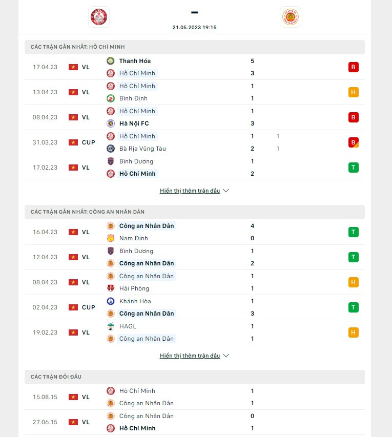 Phong độ, lịch sử đối đầu TP.HCM vs CAHN
