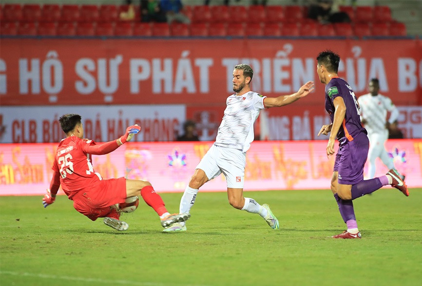Trong khi đó, Hải Phòng gặp khó vì chính người cũ Rimario. Họ đã bị Rimario chọc thủng lưới 2 lần ngay tại Lạch Tray và chỉ có thể giành lại 1 điểm nhờ các bàn thắng bất ngờ của Carlos Fernández và Mpbade ở 5 phút cuối cùng. So với phong độ của nhà á quân V-League mùa trước, đội bóng của HLV Chu Đình Nghiêm hiện tại kém xa về mọi mặt.