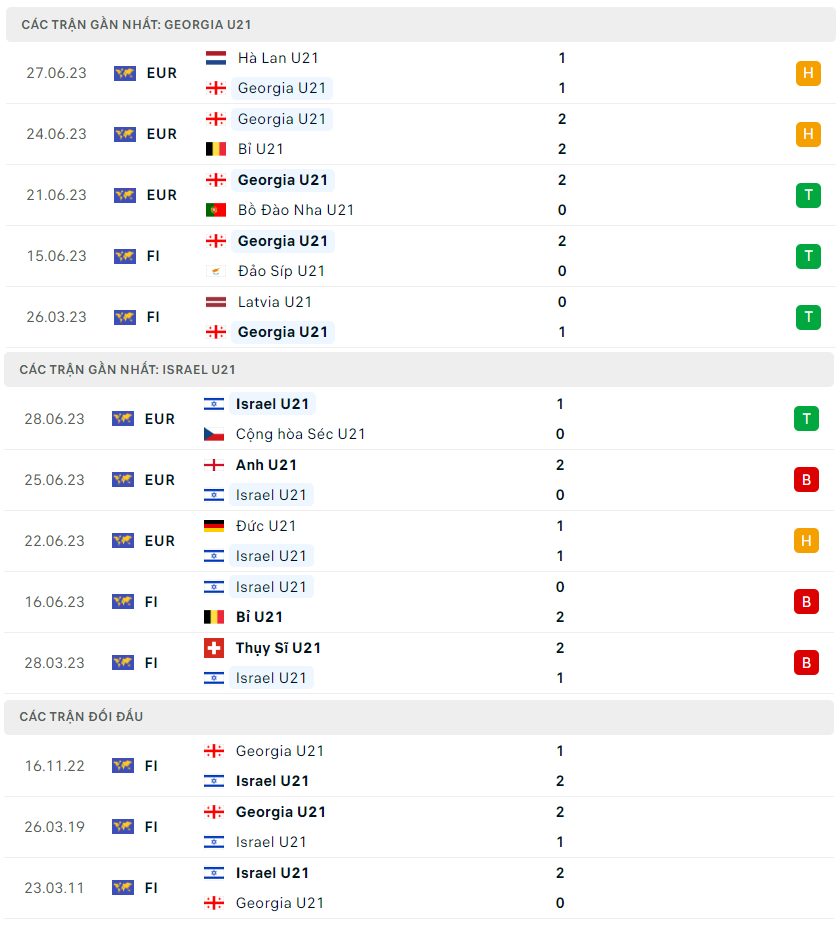 Phong độ, lịch sử đối đầu U21 Georgia vs U21 Israel