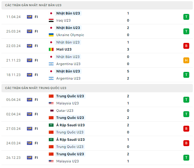 Phong độ, lịch sử đối đầu U23 Nhật Bản vs U23 Trung Quốc