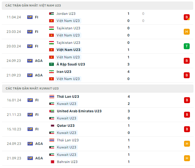 Phong độ, lịch sử đối đầu U23 Việt Nam vs U23 Kuwait