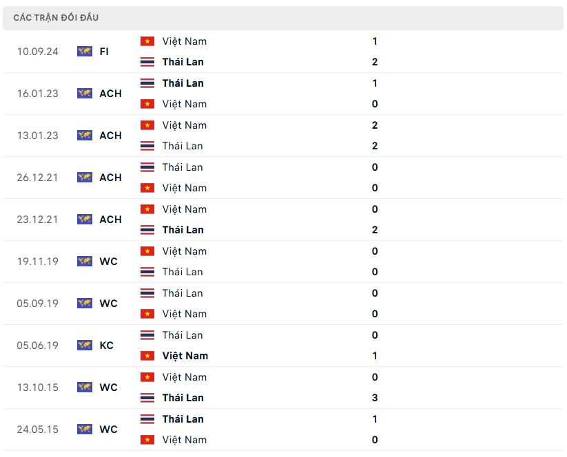 Đây là thực tế khá phũ phàng, bởi lẽ ngay cả trong giai đoạn thăng hoa nhất cùng HLV Park Hang-seo, đội tuyển Việt Nam cũng không thể thắng được Thái Lan ở các giải đấu chính thức (thi đấu 6 trận: hòa 4, thua 2). Lần gần nhất đội tuyển Việt Nam thắng Thái Lan là ở giải giao hữu King’s Cup 2019. Đó cũng chỉ là 1 trong 3 trận thắng hiếm hoi của “Các chiến binh sao vàng” trước đối thủ này kể từ khi trở lại sân chơi Đông Nam Á vào năm 1995 đến nay.