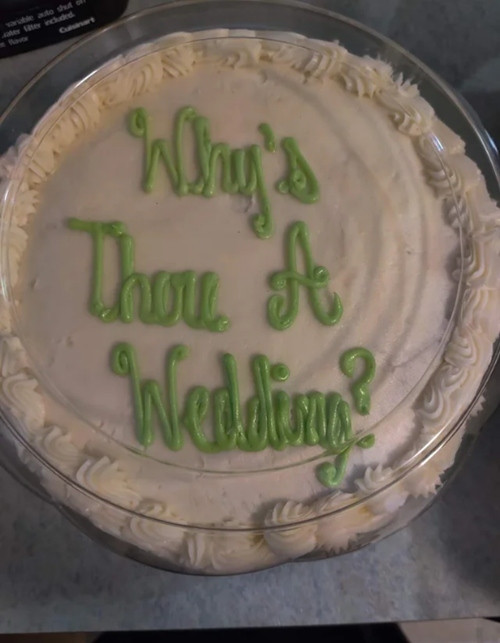 Hóa ra người bạn của cô đã đặt một chiếc bánh sôcôla, rồi nhắn tin cho người làm bánh dòng chữ mà họ cần viết trên bánh. Nhưng do hiểu nhầm ý của người đặt, nên người làm bánh đã viết dòng chữ lạ đời này.
