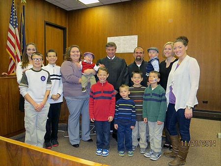 Sau khi trở về nhà ở Omaha, Nebraska, cặp đôi bắt đầu nghiên cứu việc nhận con nuôi và ghi danh vào các lớp học dành cho cha mẹ nuôi. Cho đến ngày họ nhận được một cú điện thoại, và đón được cậu bé Noah (3 tuổi) cùng em trai Chase (22 tháng tuổi) về với gia đình vào tháng Tư năm 2004.