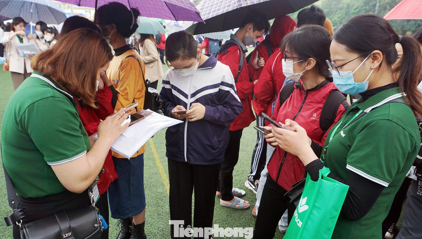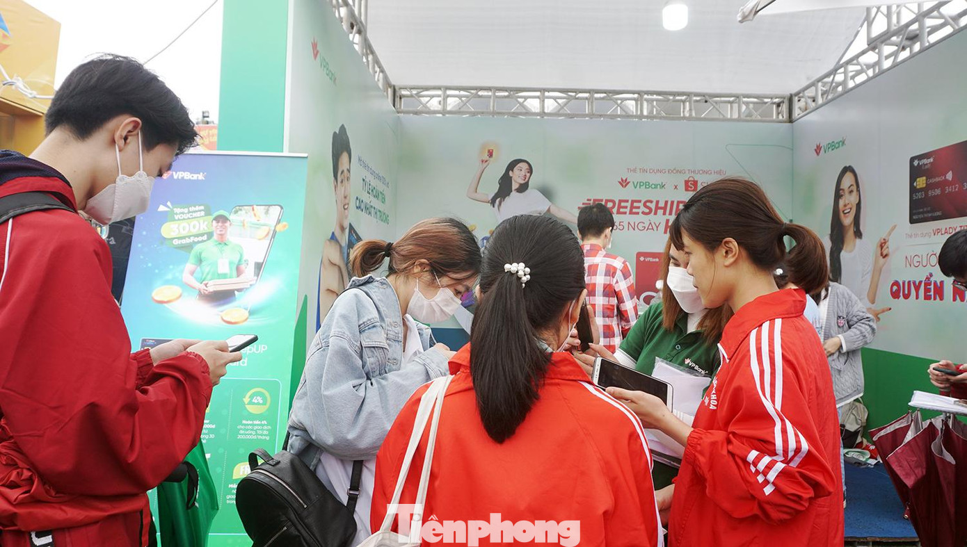 | Các bạn trẻ đứng kín trước lối vào gian hàng bởi loạt ưu đãi hấp dẫn khi mở tài khoản của VP Bank. |