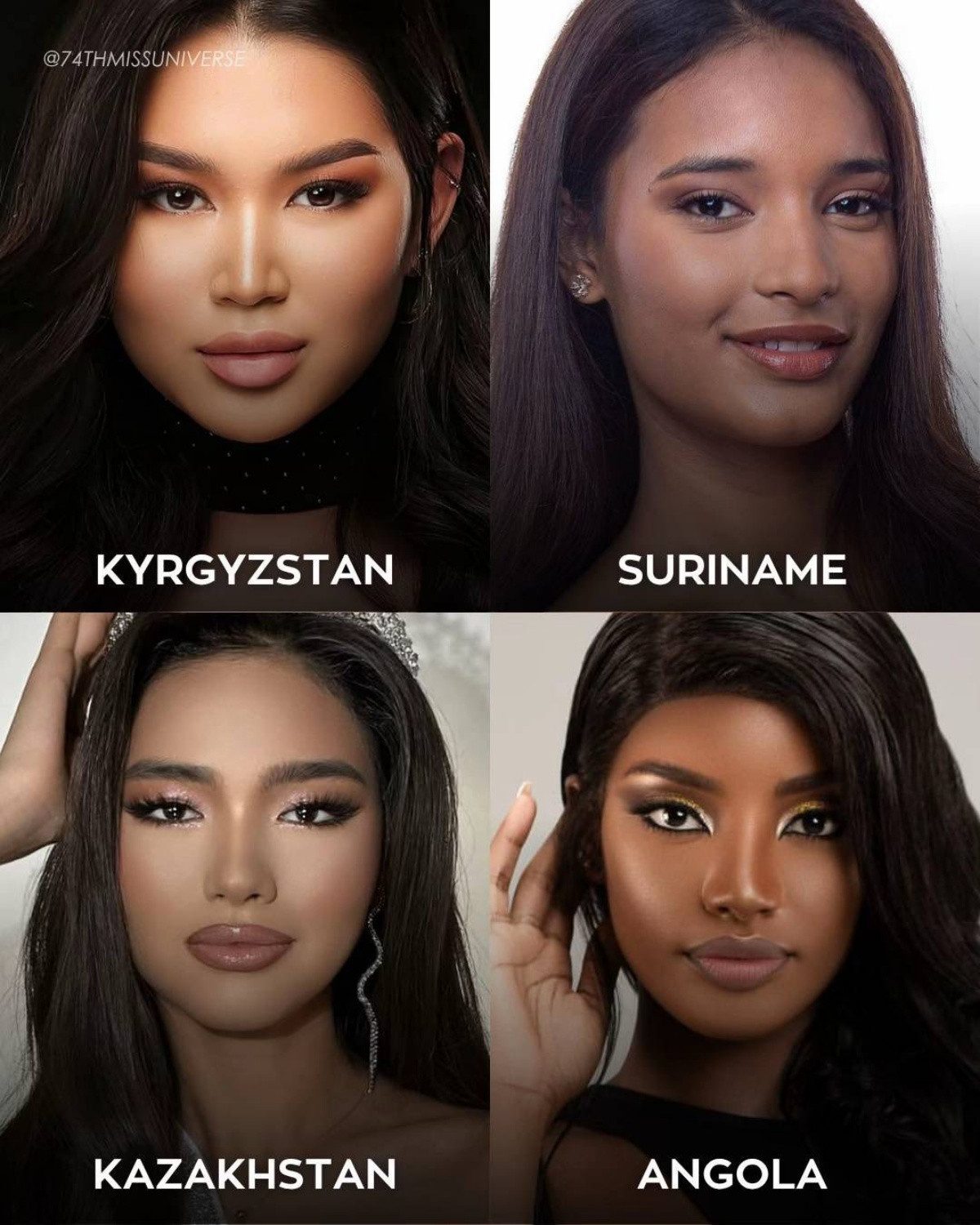Từ trái qua phải, từ trên xuống dưới: Hoa hậu Kyrgyzstan Mary Kuvakova - Hoa hậu Suriname Chiara Wijntuin - Hoa hậu Kazakhstan Dana Almasova - Hoa hậu Angola Maria Cunha.