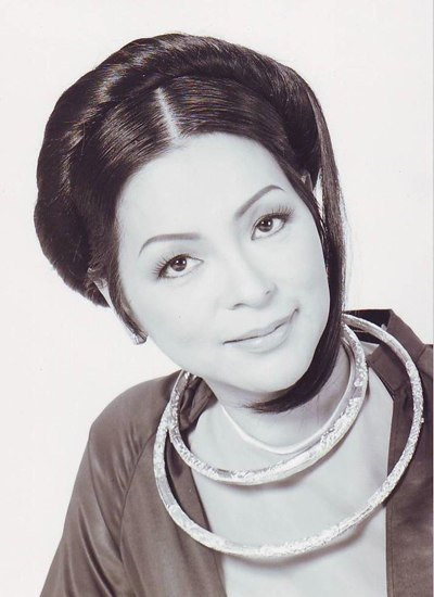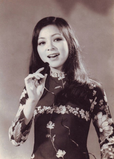 Ái Vân (phải) và ca sĩ Minh Thìn (đoàn Bông Sen) tại Sài Gòn năm 1975.