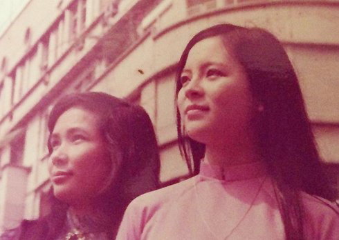 Ái Vân (phải) và bạn bè trên đường phố Sài Gòn năm 1975.