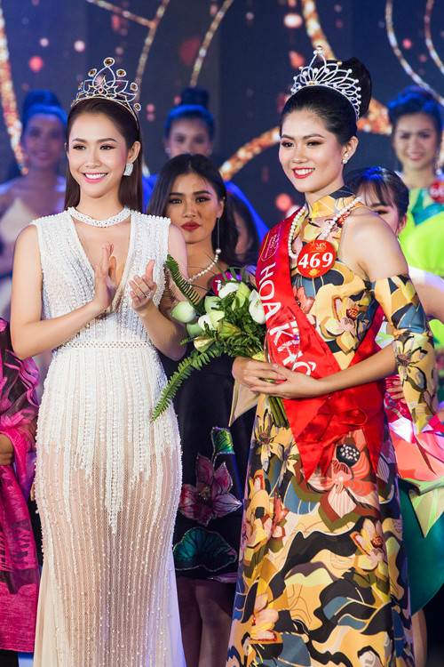 Tối 25/11, người đẹp Vũ Hương Giang đăng quang Miss Photo. Trong ảnh, cô được Hoa khôi phụ nữ Việt Nam qua ảnh 2012 - Phan Thu Quyên - trao vương miện.