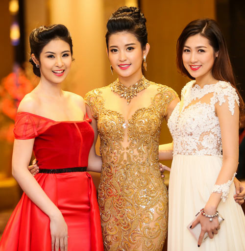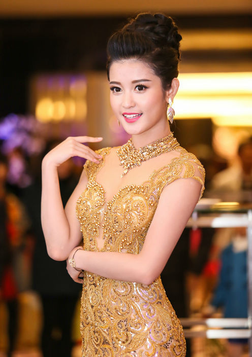 Huyền My xuất hiện xinh đẹp và lộng lẫy tại event đầu tiên mà cô tham dự sau khi giành ngôi Á hậu 1 tại cuộc thi Hoa hậu Việt Nam 2014. Người đẹp diện bộ váy màu vàng đồng, xuyên thấu của nhà thiết kế Hoàng Hải. Cô búi tóc cao sang trọng, đeo phụ kiện ton-sur-ton.