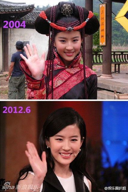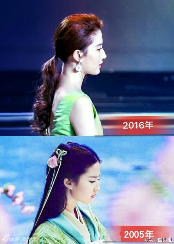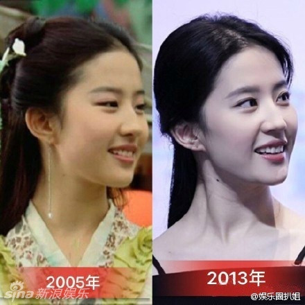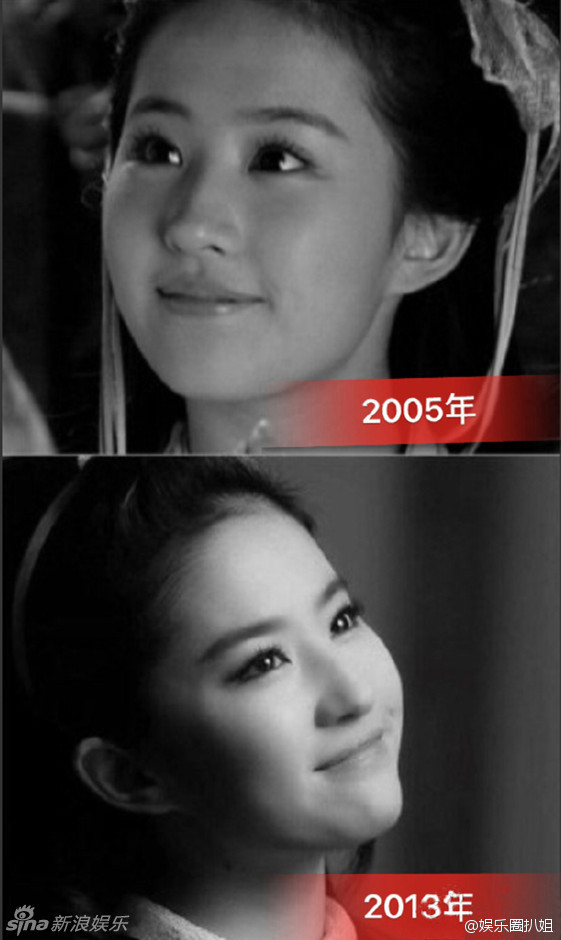 Mới đây, trang Sina tung loạt ảnh so sánh nhan sắc của Lưu Diệc Phi sau 10 năm cả trên màn ảnh lẫn đời thực cho thấy các nét trên gương mặt của mỹ nhân làng giải trí Hoa ngữ không hề thay đổi