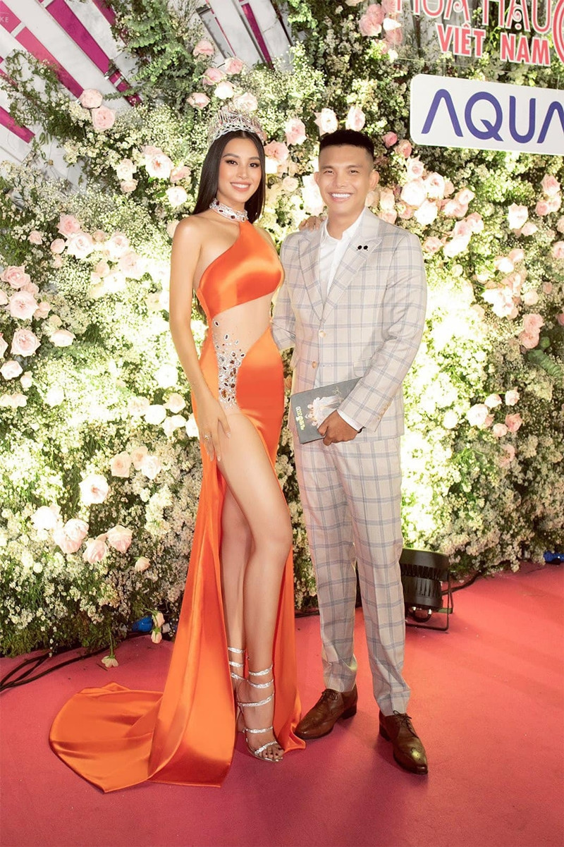 Hoa hậu Kỳ Duyên (phải) sải bước trên thảm đỏ đêm Chung kết Hoa Hậu Việt Nam 2020 với bộ váy vô cùng ấn tượng, khoe trọn thân hình đẳng cấp “siêu mẫu”.