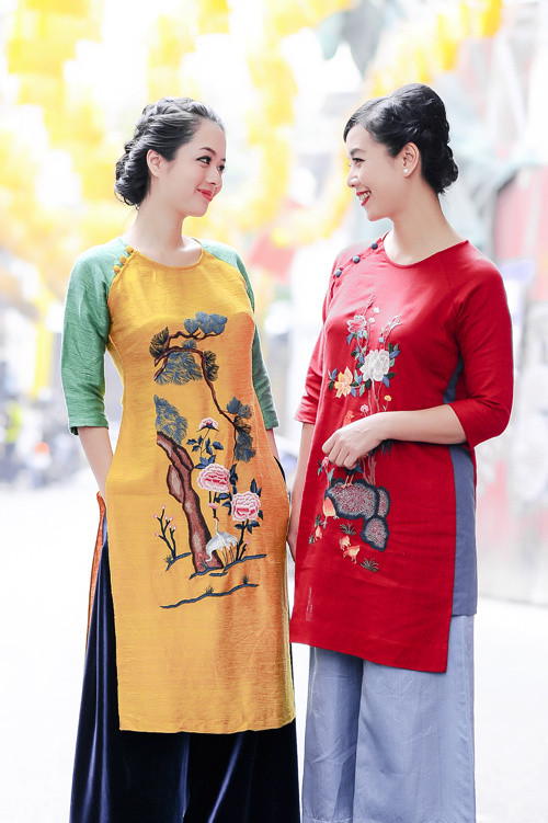 Áo dài và phụ kiện ngọc trai gắn liền với hình ảnh Chiều Xuân nhiều năm qua.