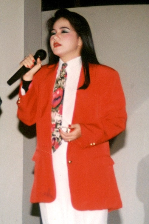 Ca sĩ Ngọc Ánh diện vest màu nóng - mốt của nhiều ca sĩ lúc bấy giờ. Với phong cách trình diễn bốc lửa, chị được ca ngợi là "Nữ hoàng nhạc Rock" những năm 1990.