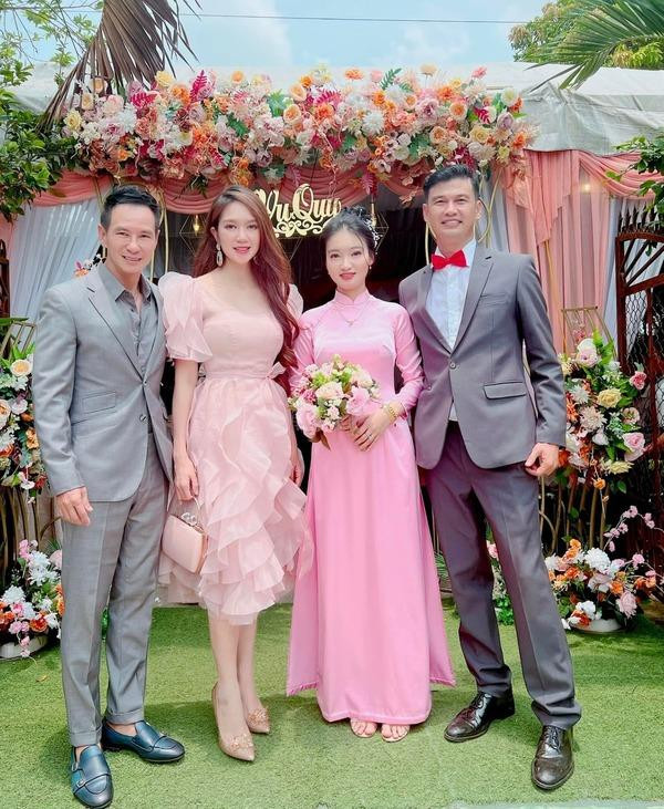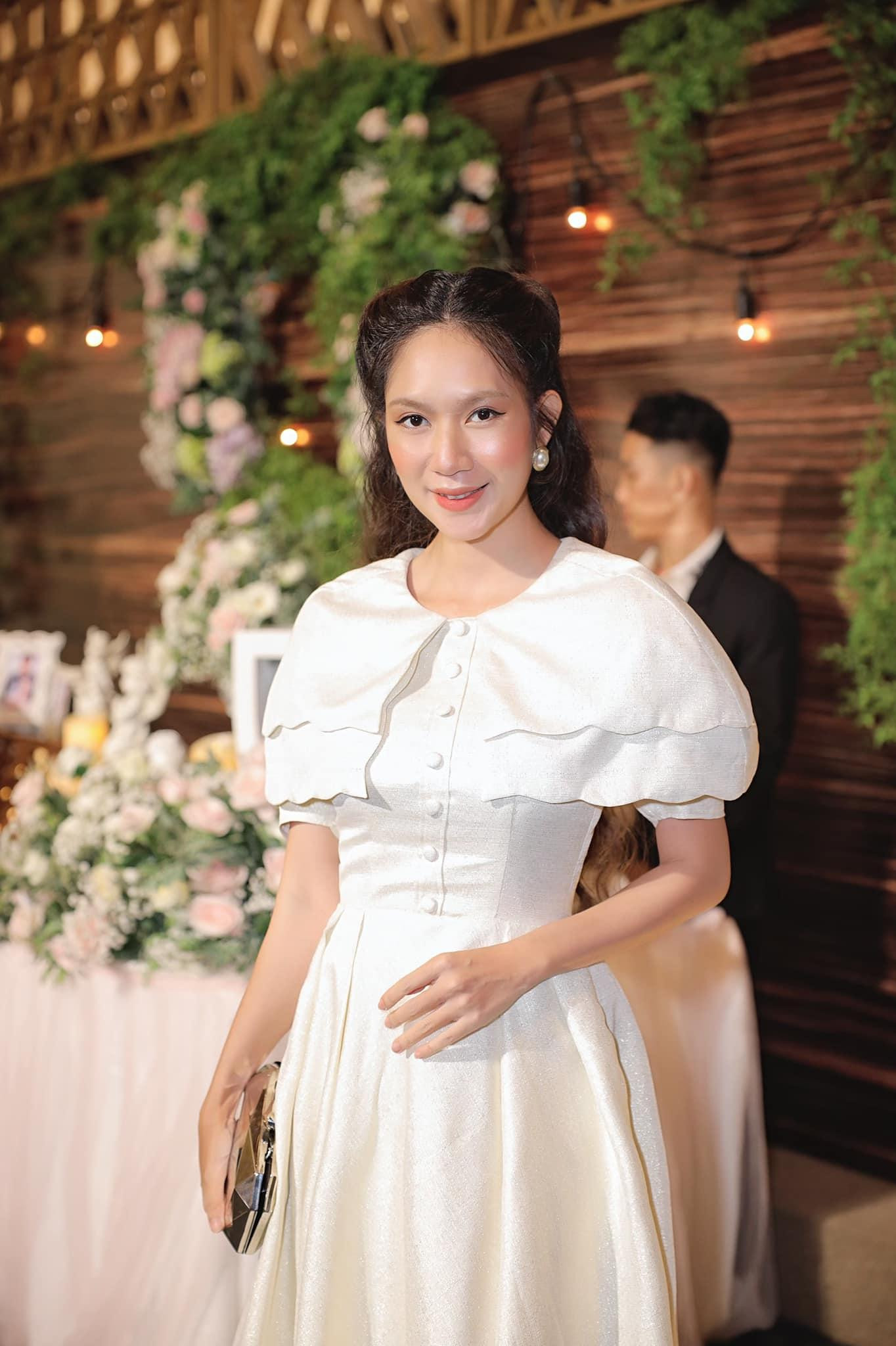 Mỗi khi đi dự đám cưới, Minh Hà đều khéo léo chọn những trang phục khá đơn giản, kiểu tóc xõa dài dịu dàng. Bà xã Lý Hải cũng tinh tế chọn phong cách trang điểm nhẹ nhàng trên làn da trắng trẻo, mịn màng của mình.
