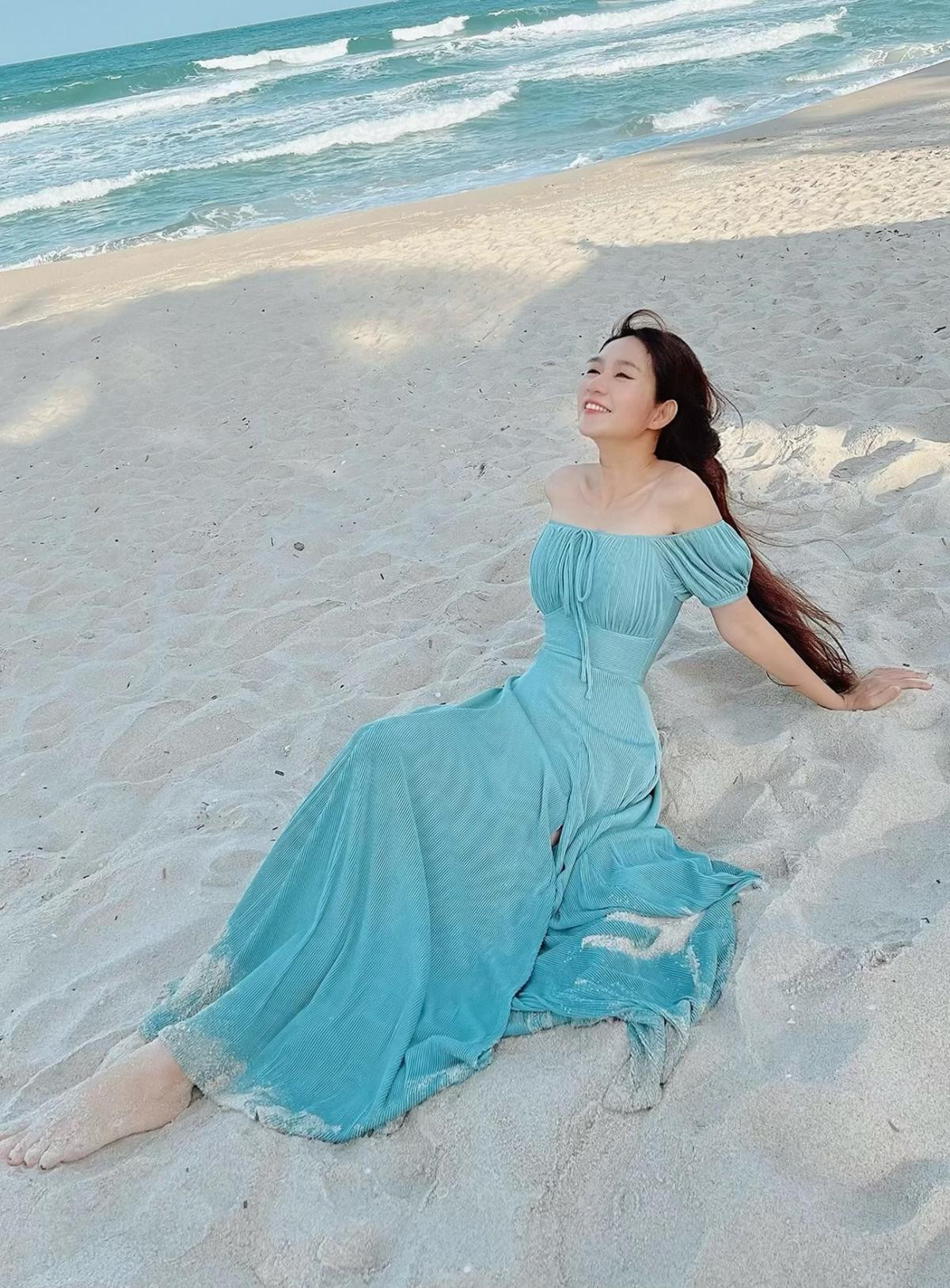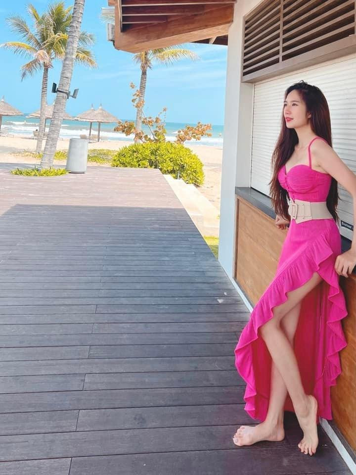 Trên trang cá nhân, Minh Hà cũng thường xuyên đăng tải những hình ảnh rạng rỡ của mình khi đi du lịch cùng gia đình. Bà xã Lý Hải có những bức ảnh thả dáng trong thiết kế 2 dây xẻ tà cao, chi tiết bèo nhún ở phần chân váy càng làm tăng vẻ nữ tính cho tổng thể. Thiết kế 2 dây ôm sát phần thân trên giúp Minh Hà khoe trọn bờ vai trần cùng phần xương quai xanh quyến rũ.
