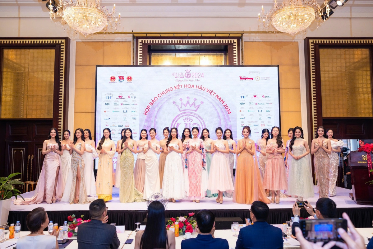 HHTO - Chiều 13/6, tại khách sạn Indochine Palace (TP Huế), ban tổ chức (BTC) cuộc thi Hoa hậu Việt Nam 2024 tổ chức họp báo Chung kết. Xuất hiện tại buổi họp báo, 25 thí sinh của vòng Chung kết toàn quốc Hoa hậu Việt Nam 2024 mặc trang phục dạ hội, xinh đẹp lộng lẫy.