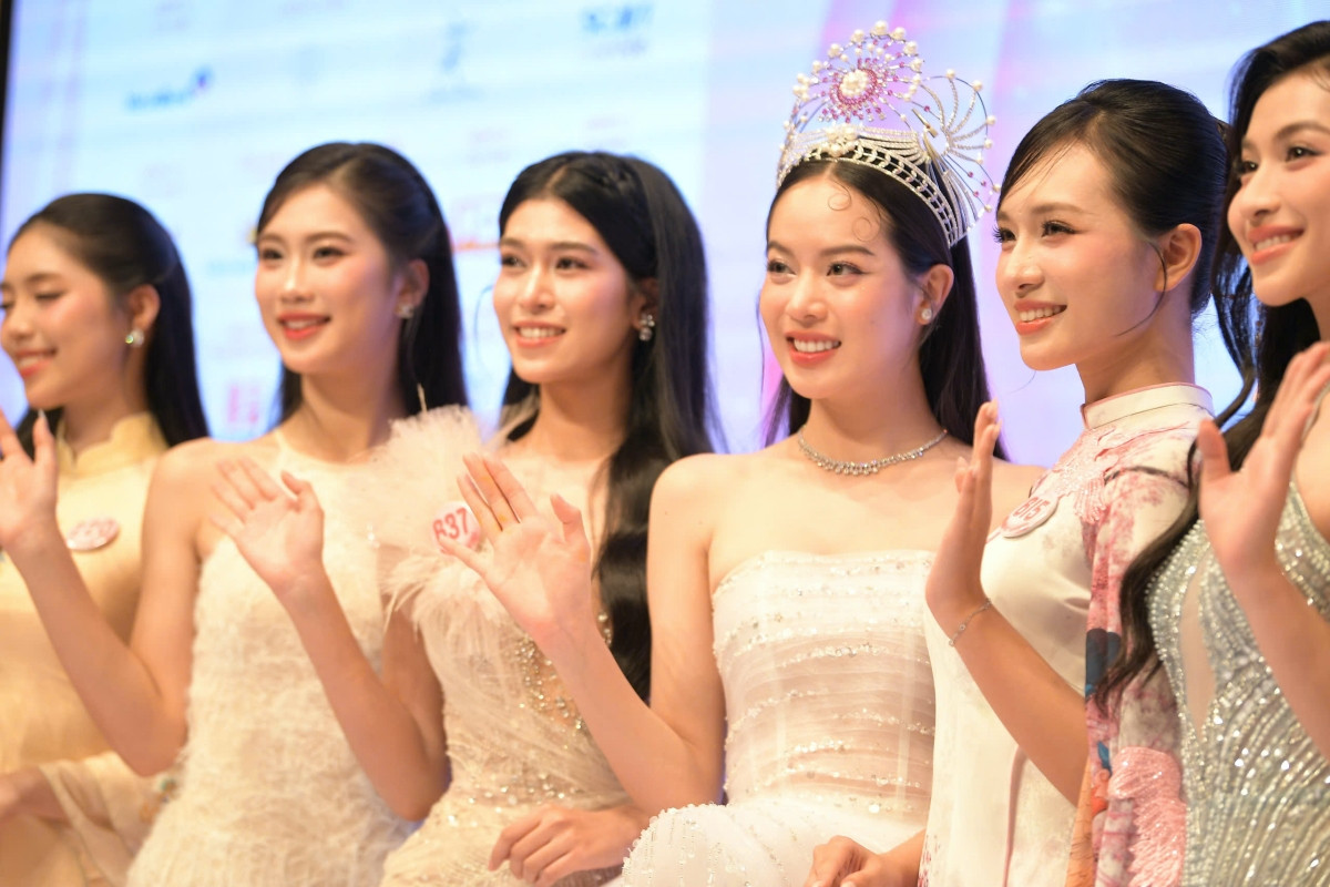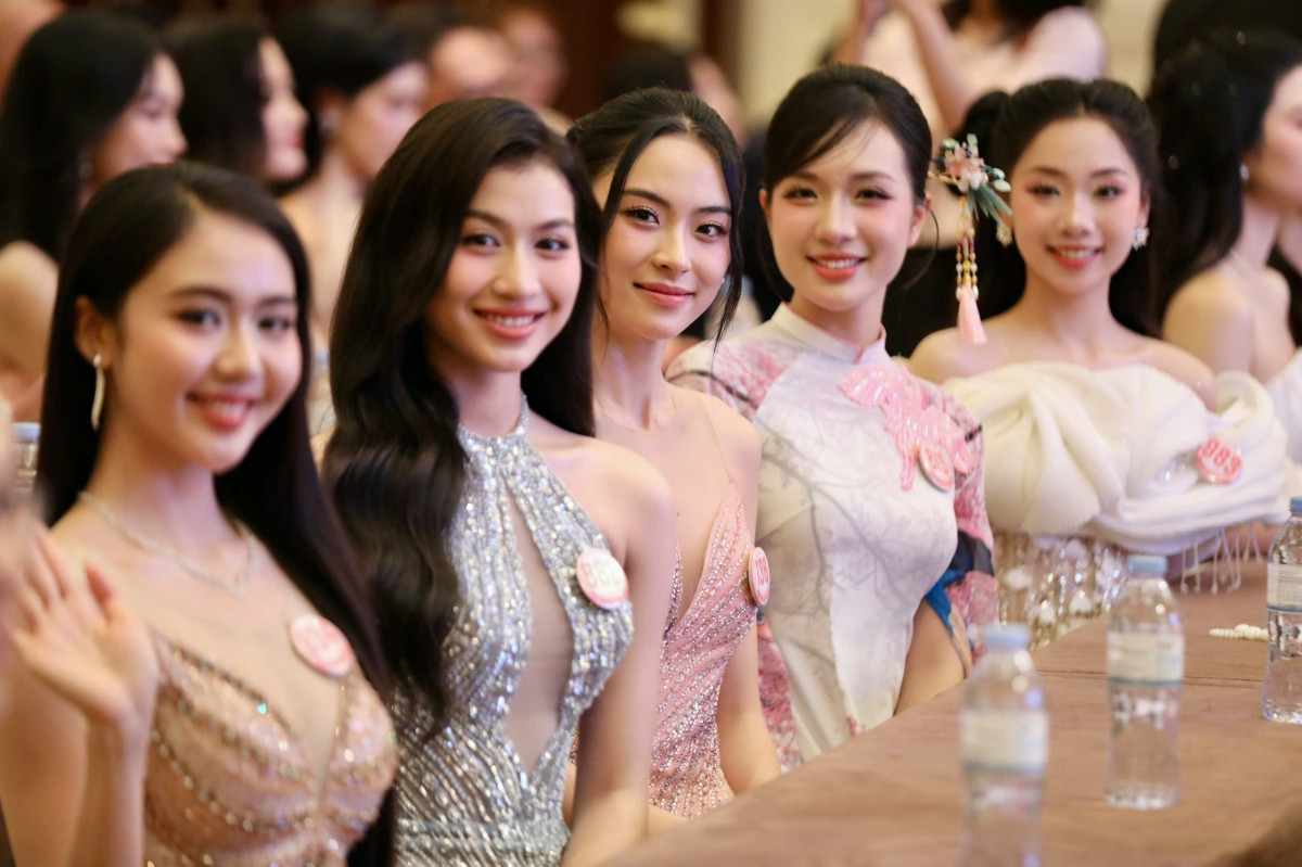 Hoa hậu Thanh Thủy chung khung hình cùng 25 thí sinh của vòng Chung kết toàn quốc Hoa hậu Việt Nam 2024.