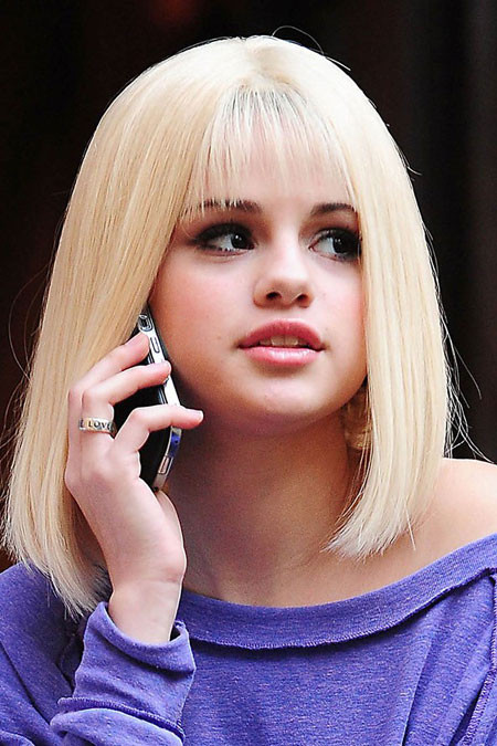 Selena thay đổi hình ảnh bằng một mái tóc bạch kim giả năm 2009.