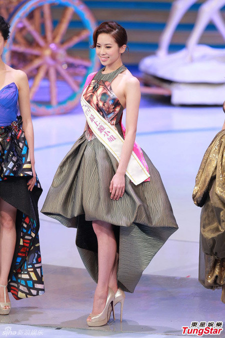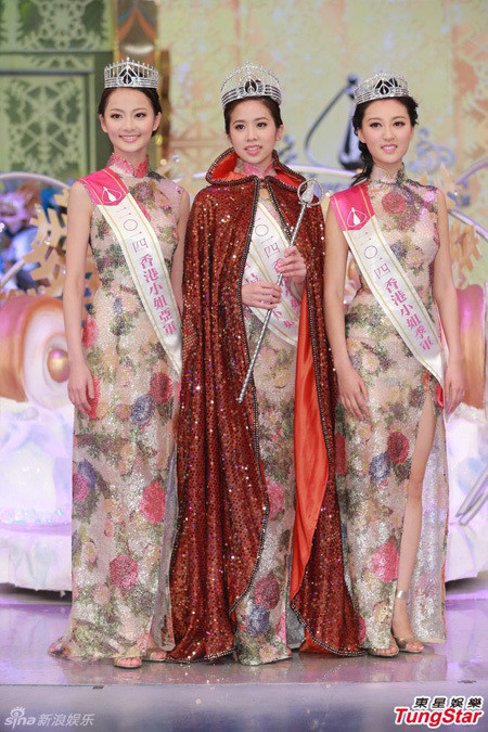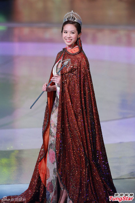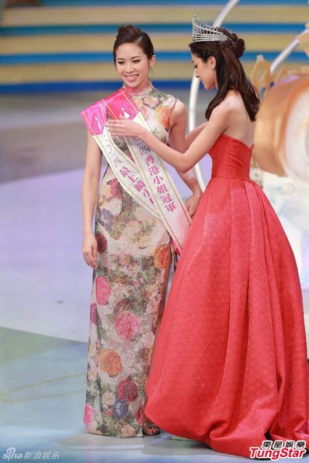 Chung kết cuộc thi Hoa hậu Hong Kong 2014 diễn ra tối 31/8. Thí sinh Thiệu Bội Thi giành ngôi vị cao nhất. Trong ảnh, Bội Thi được người tiền nhiệm - Trần Khải Lâm - trao danh hiệu.
