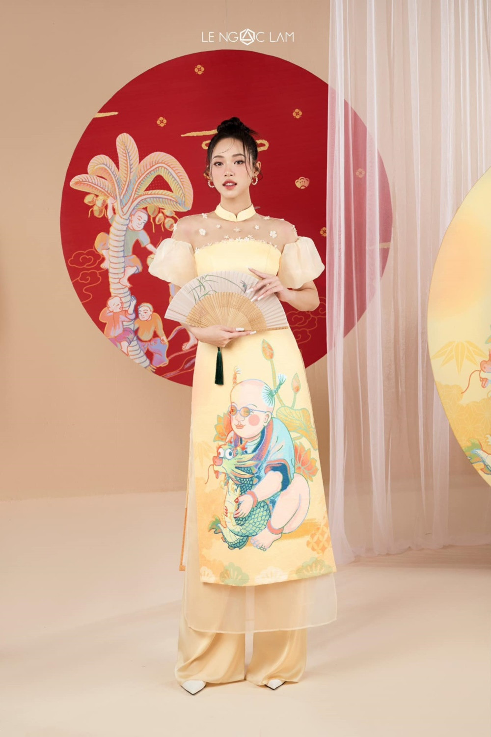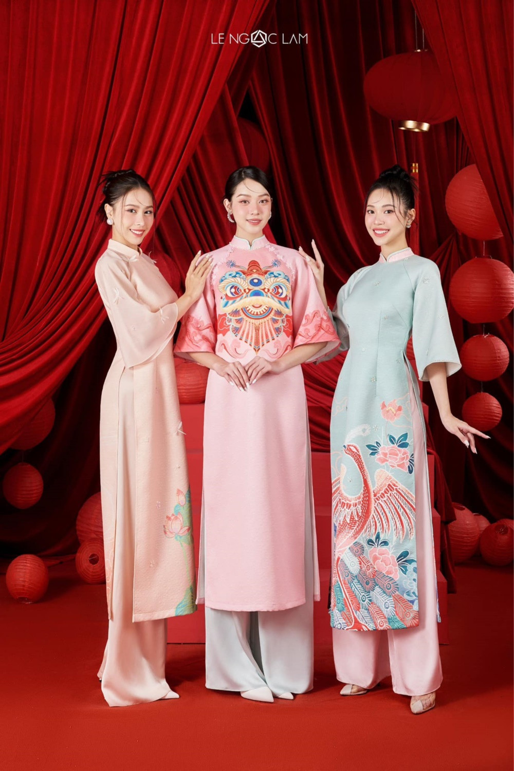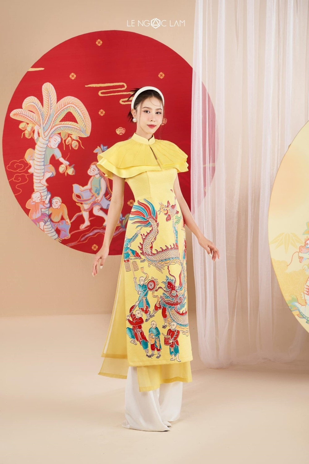 Loạt áo dài được Top 3 Hoa hậu Việt Nam 2022 chọn mặc do NTK Lê Ngọc Lâm thực hiện, được lấy cảm hứng và tình yêu từ những bức tranh Đông Hồ.