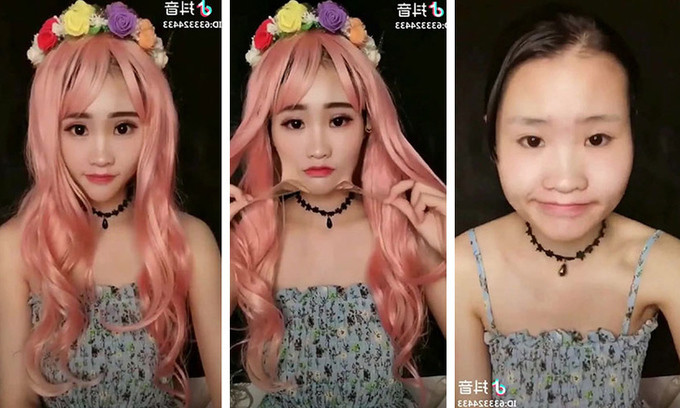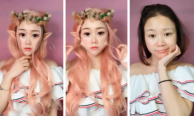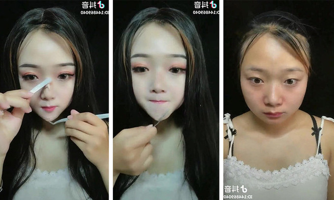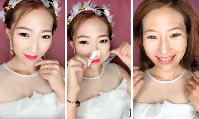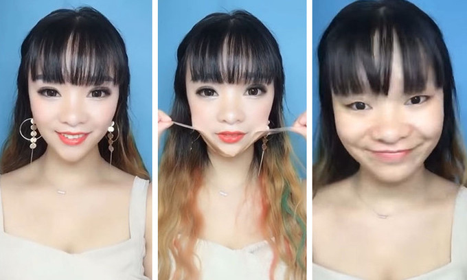 Sức mạnh "thần thánh" của trang điểm vốn không phải là chuyện lạ với các tín đồ làm đẹp. Tuy nhiên khi chứng kiến loạt ảnh trước - sau make-up của loạt hot girl Trung Quốc, nhiều người vẫn thấy ngỡ ngàng. Không ít cô gái có cả trăm nghìn người theo dõi trên mạng xã hội gây bất ngờ khi tiết lộ dung mạo thật, khác xa hoàn toàn so với hình ảnh lung linh thường thấy. Để có vẻ ngoài thu hút, các cô nàng phải viện đến một lớp "mặt nạ" phấn son dày cộp, biến mình thành một người gần như khác hoàn toàn. Chỉ đến khi các cô gái quyết định tẩy trang, nhiều fan mới choáng váng khi biết đôi mắt to, chiếc mũi cao hay gương mặt V-line thon gọn đều là sản phẩm của công nghệ. Bằng cách trang điểm, các cô gái Trung Quốc có thể biến hóa dung nhan, mỗi lần như trở thành một người khác biệt. Những phương pháp làm đẹp được con gái Trung mê nhất gần đây là kem nền thật trắng, sáp nặn đắp mũi để giúp sống mũi trông cao hơn và băng dính trong suốt để giúp gương mặt "ngấn mỡ" trở nên thon gọn.