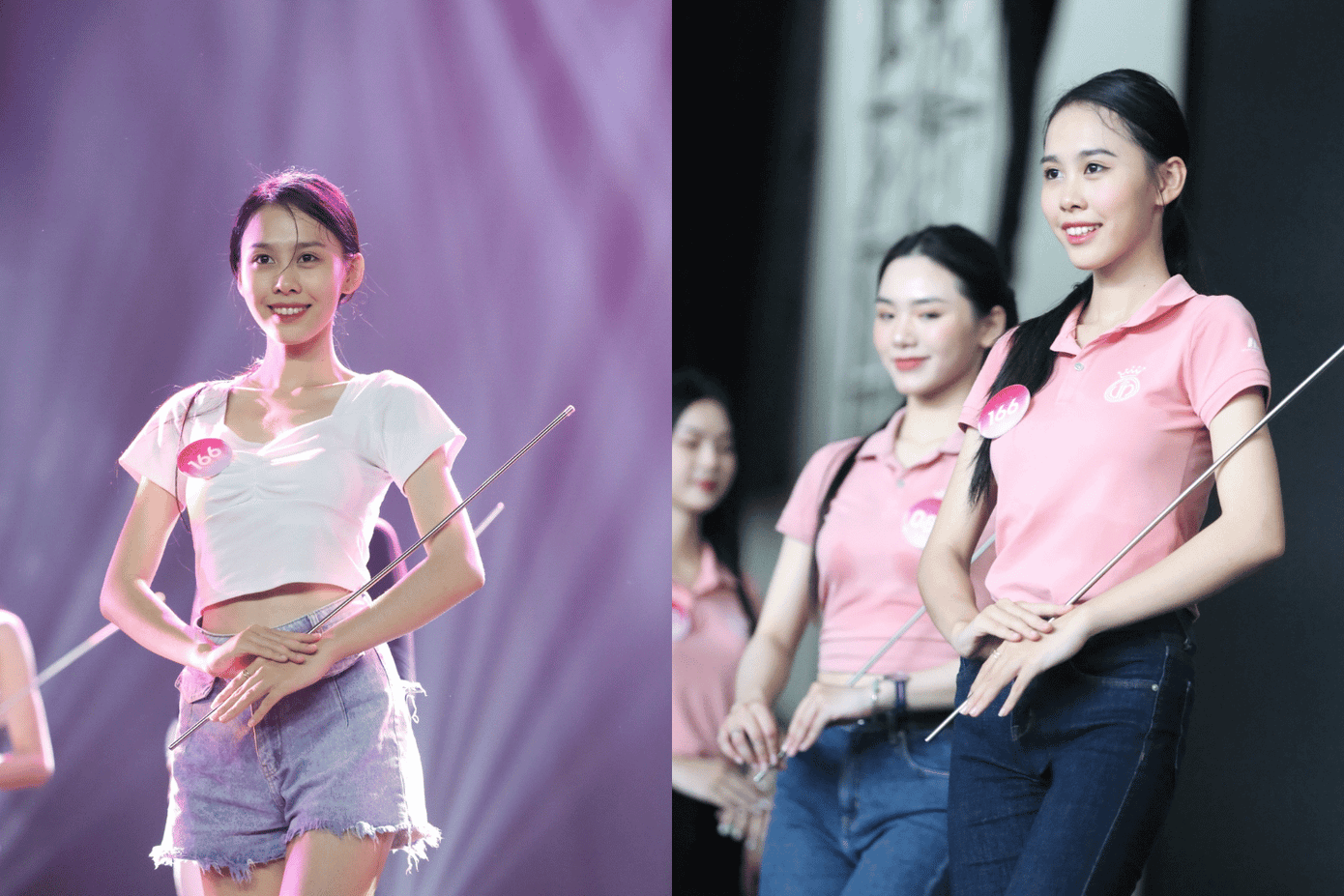Không những thế, người đẹp sẵn sàng hỗ trợ những bạn thí sinh còn gặp khó khăn khi trình diễn trên giày cao gót. "Điều này khiến bản thân mình cảm thấy khá là vui và đây cũng là một trong những điều mình tiến bộ nhất", Ngọc Hằng hào hứng chia sẻ.