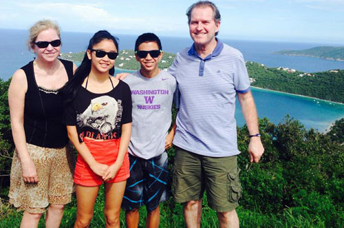 Trần Đông Lan (thứ hai từ trái sang) bên bố mẹ nuôi và em trai.
