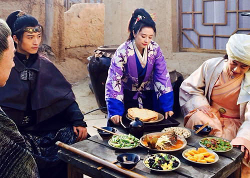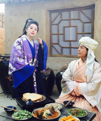 Hà Mỹ Điền chia sẻ ảnh hậu trường trên trang cá nhân và viết: "Lệnh Hồ đại ca, sau khi hoàn tục, tóc muội dài ra, muội cũng chẳng ăn chay nữa. Có thịt, có rượu, có cá đây, huynh đừng khách sáo".