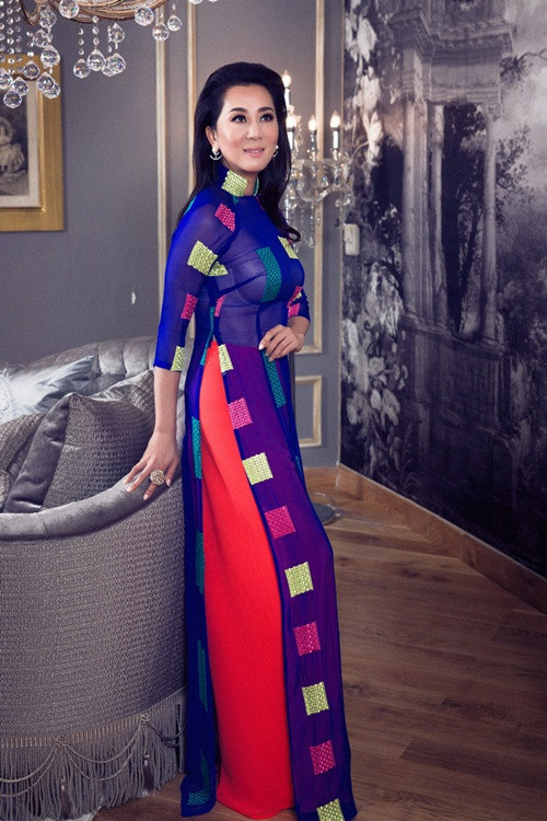 Lựa chọn áo dài nhiều màu sắc nổi bật là bí quyết tạo nên diện mạo trẻ trung của Kỳ Duyên.