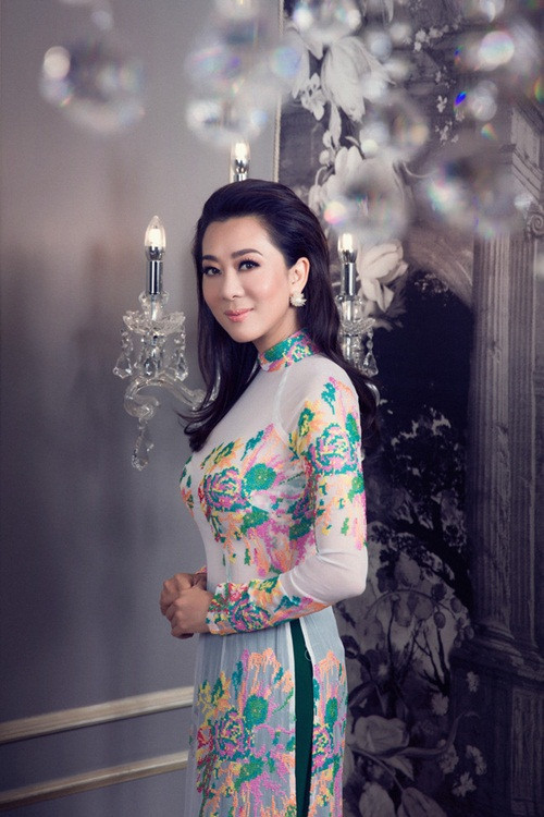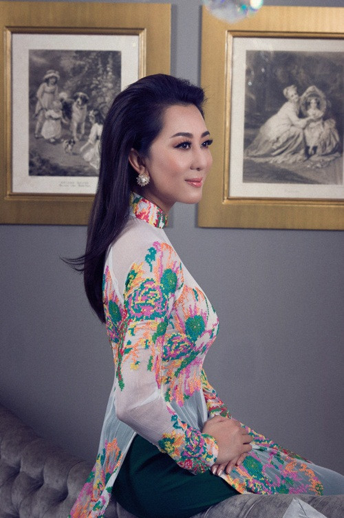 Kỳ Duyên cho biết cô yêu thích những mẫu áo dài thêu hoa, chim chóc và cây lá... Mẫu áo cổ thuyền giúp cô khoe được chiếc cổ cao.