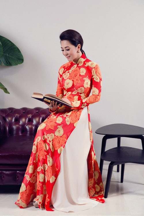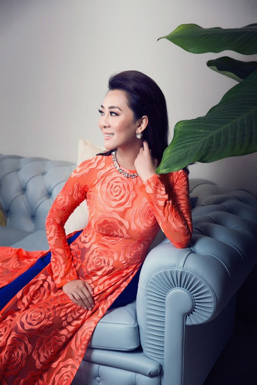 Trong bộ ảnh mới, MC Kỳ Duyên diện những tà áo dài thuộc bộ sưu tập Hoa mùa hạ của nhà thiết kế Sơn Collection